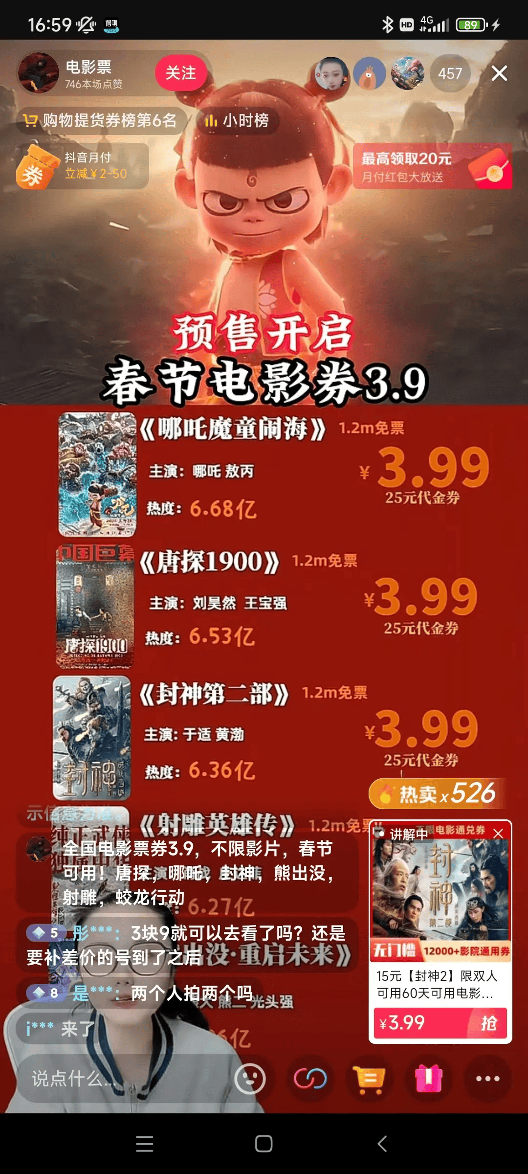 每场直播能有几千上万人观看,一单利润几块到几十块不等,春节前这几天观影需求旺,每天能出几百上千单,收入相当可观。不过节后这个市场热度会有所下降,但长期操作是完全可行的。